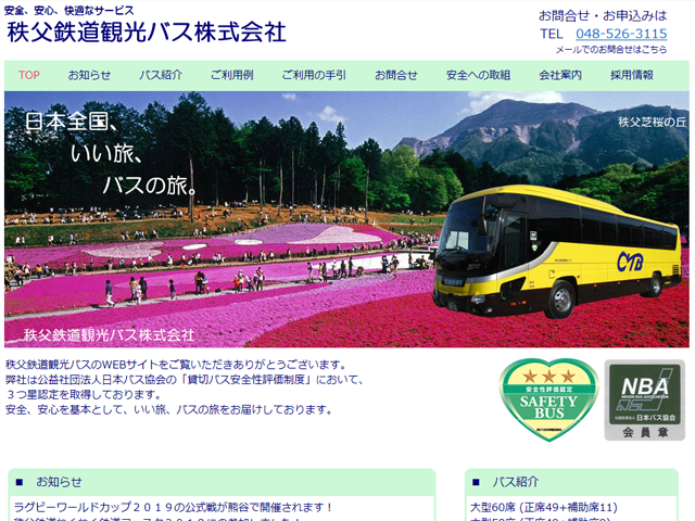 埼玉県熊谷市(行田市、長瀞町) 大型バス、中型バス、小型バス、マイクロバスを取り扱う貸切バス事業者です。