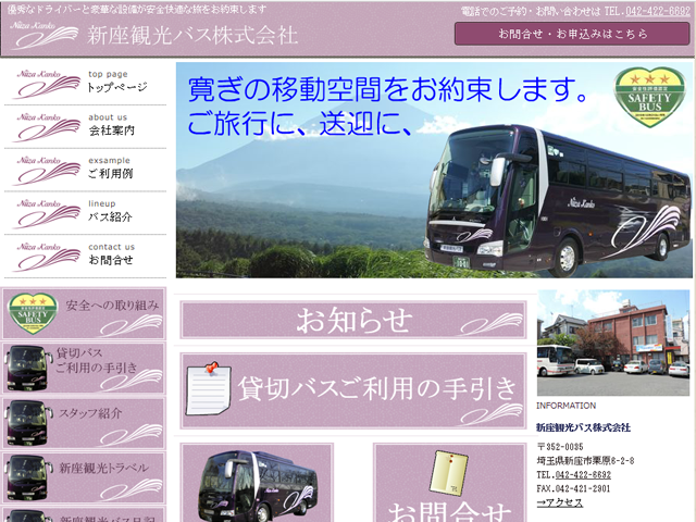 埼玉県新座市 大型バス、中型バス、小型バス、マイクロバスを取り扱う貸切バス事業者です。