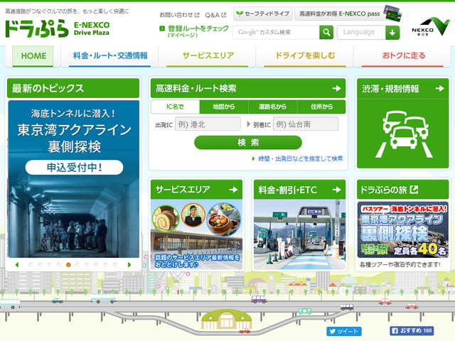 高速道路の経路検索サイトです。 ドライブの計画に有効です。