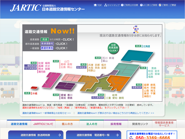 高速道路を主体とした、全国の交通情報が確認できます。
