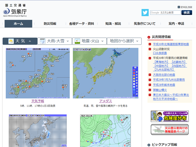 気象庁のサイトです。 気象に関する詳細の情報を確認できます。